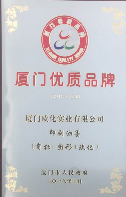 近日,廈門市人民政府發(fā)布了2018年度廈門優(yōu)質(zhì)品牌通知,根據(jù)《廈門優(yōu)質(zhì)品牌管理辦法》相關(guān)規(guī)定,經(jīng)評(píng)審決定授予廈門歐化實(shí)業(yè)有限公司印刷油墨2018年度“廈門優(yōu)質(zhì)品牌”稱號(hào)。