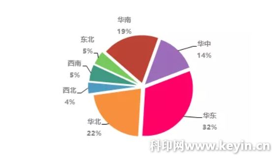 如圖,樣本中華東、華北和華南地區(qū)占比較高,與去年相比分布情況變化不大。本次的調(diào)研樣本區(qū)域分布比較均衡。與去年相比較,華中地區(qū)的印刷企業(yè)參與度有所增長。