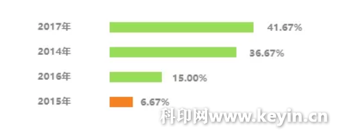 自2013年首屆印刷電商年會以來,國內(nèi)涌現(xiàn)了越來越多的印刷電商。根據(jù)調(diào)研結(jié)果,加入印刷電商的印刷企業(yè)數(shù)量也在逐年增加,尤其在2017年,實(shí)踐者數(shù)量集中增長。