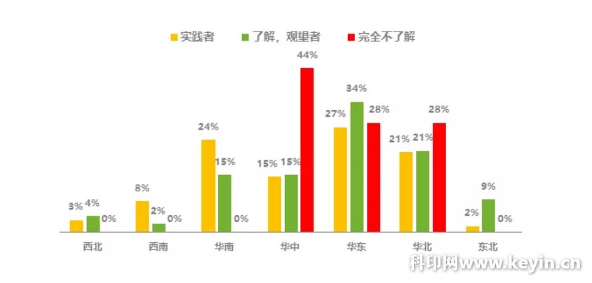 華東地區(qū)對印刷電商的認(rèn)知度最高,且實(shí)踐者人數(shù)最多;華中地區(qū)對印刷電商的認(rèn)知度最低;與去年相比在我們調(diào)研的目標(biāo)人群中,東北地區(qū)已經(jīng)開始有實(shí)踐者;其余各地區(qū)對印刷電商的認(rèn)知分布相對平均。