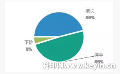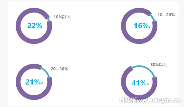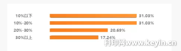 由此可見,在企業(yè)轉(zhuǎn)型印刷電商中,銷售收入上升的企業(yè)大部分的增長幅度在20%及以下。與去年相比,在轉(zhuǎn)型的印刷企業(yè)中,銷售收入上升幅度明顯降低,說明在印刷電子商務(wù)的影響下,銷售收入在趨于平穩(wěn)。